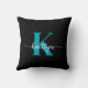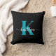 Schwarz-Aquamarin-Monogramm Kissen