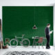 Schwarz auf grünem geometrischem Überschneidungspapier