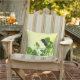 Dieses Kissen im Freien besticht durch einen roten Flügel auf einem Ast in einem Aspenbaum. Er guckt hinter den goldgrünen Blätter hervor. Der Himmel hat einen sehr blassgelben Ton.