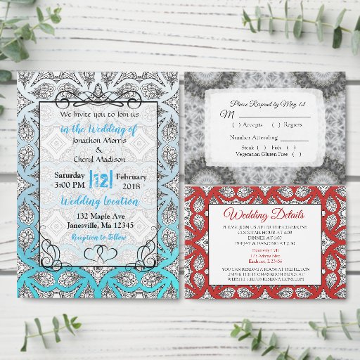 Schwarz-Blau-Mandala-Hochzeitskarte Begleitkarte
