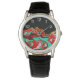 Uhr, Vintage Männeruhr mit schwarzem Lederarmband