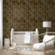 Die elegante Tapete weist ein griechisches Schwarz-Gold-Muster auf - ein altes Motiv mit modernem Flair