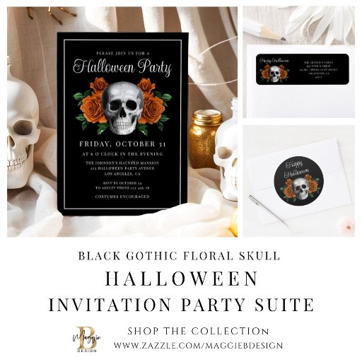 Black Gothic Floral Scull Halloween Party SuiteDesignt von Maggie B Design