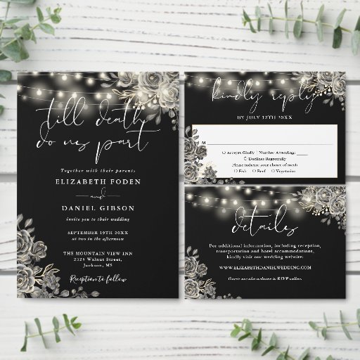 Schwarz-Gotische Rose Lights Wunschhochzeit Begleitkarte
