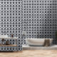 Schwarz-Grau-Abstraktes Retro Geometrisches Muster-Tapete mit einem abstrakten Retromuster in Schwarz-Grau. Ideal für Wohngestaltung, Wohnzimmer, Schlafzimmer, Küche, Bad, Wandakzente und Behandlungen, Büroeinrichtung und Party Dekoration. Erstellt von Evco Studio www.zazzle.com/store/evcostudio