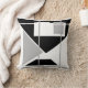 Dieses moderne Design im modernen Stil des Mitteljahrhunderts ist geometrisch und setzt sich aus grau, weiß und schwarz fett geformten Formen zusammen. Das abstrakte Bild wird auf jeder Seite horizontal umkehrt, wodurch sich ergänzende Aussehen ergibt. Dieses geometrische Motiv ist modern und poliert, sauber, puristisch und minimalistisch, und vermittelt ein sehr modernes, auffallendes und kreatives Design, das Wohnzimmer, Schlafzimmer, Arbeitsbereich, Terrasse oder Innendekoration sucht. Gleichzeitig bietet dies ein Gefühl der Wärme, aber auch Ruhe und Entspannung. Dieses Akzent, das in eine Vielzahl von Stilrichtungen passt, bietet viel dekoratives Potenzial, von Retro/Vintag über rustikale Ranch bis hin zu modernem städtischem Loft oder Hochhaus.