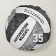 Dieses lustige Volleyballkissen für Mädchen mit individuellen Teamfarben zeigt das realistische, stylisierte Bild eines schwarz-grauen Volleyballs, das ein künstlerisches, blumenkalidoskopisches Muster mit schwarz-grauem Paneel hat - personalisiert mit ihrem Namen und Jersey-Nummer - von katz_d_zynes