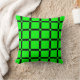 Dieses geometrische Kopfkissen weist ein schwarzes quadratisches Rastermuster auf neongrünem Hintergrund auf.