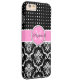 Elegantes verziertes Retro-Design mit blühenden, schwarz-rosa-weißen Damaskus und Punkt-Muster. Benutzerdefiniertes und optionales Monogramm Design ist auf anderen Produkten erhältlich.