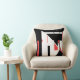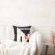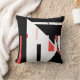 Schwarz, rot auf weißem diagonalem geometrischem D Kissen