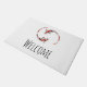 Eine Türmatte mit einem schwarz-roten Koi-Fisch, der sich umkreist und schwimmt. Das einfache minimalistische Design.