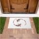 Eine Türmatte mit einem schwarz-roten Koi-Fisch, der sich umkreist und schwimmt. Das einfache minimalistische Design.