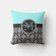 Schwarz-silbergrauer Damast, Türkis, Aqua Blau Kissen Für Draußen