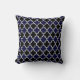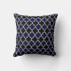 Schwarz und Texturierte Navy Blue Quatrefolien dekorative Kissen Kissen. Die schwarzen Formen sind glatt und die Marinestücke wurden so strukturiert, dass sie dem Kissen ein einzigartiges Aussehen verleihen.
