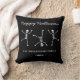 Schwarz und Weiß gezeichnete Skelettkeule Happy Halloween Kissen.