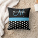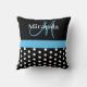 Schwarz-weiß Blue Monogram Script Polka Dots Kissen