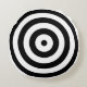 Rundkissen mit einem schwarz-weißen Stier-Auge auf beiden Seiten mit sieben konzentrischen schwarz-weißen Ringen. Personalisierbar. Ein Kissen für die Sportbegeisterten in Ihrem Leben.