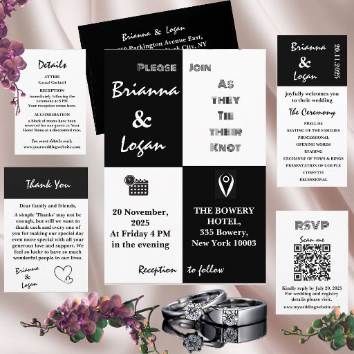 Planen Sie eine lässige Hochzeit von MODERN, STYLISH & LAID-BACK, dann wird meine Black & White Contemporary Wedding Kollektion Ihre Bedürfnisse besser erfüllen. Die kontrastreiche Kombination aus Schwarz und Weiß ist zwar einfach, stellt aber klassische Eleganz für diese moderne Zeit dar. Sie können diese stilvolle Vorlage Ihren eigenen Bedürfnissen anpassen.
