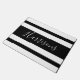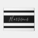 Dieses Design ist eine hochwertige Türmatte und weist ein schwarz-weiß gestreiftes Muster auf, in dem der Name in der Mitte mit extravagantem Schriftart geschrieben wird. Ideal für einen neuen Zuhause-Besitzer, bestellen Sie noch heute Ihre!
