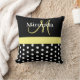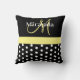 Schwarz-weiß-Gelbe Monogram-Script-Polka-Punkte Kissen