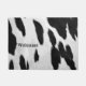 Dieses realistische Schwarz-Weiß-Bild von gepunkteter Kuhhaut verleiht Ihrem Zuhause einen südwestlichen Geschmack. Das Wort wird in einem extravaganten Western-Schriftart empfangen.
