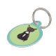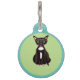 Schwarz-Weiß-Kätzchen auf grünem Hintergrund Haustiermarke