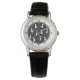 Uhr, Klassische Damenuhr mit schwarzen Lederarmband