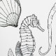 Eine tolle Schale und eine Knüppel Tapete für jeden, der das Leben im Meer oder die Lebensdekoration an der Küste Lieben. Dieses Tapete ist ein weißer Hintergrund mit einer Meereskreatur aus schwarzer Linie, die Schildkröten, Oktopus, Seepferd, Korallen, Muscheln und Algen enthält. Ideal für alle Zimmer in einem Strandhaus oder für die Dekoration mit Küsten-Themen.