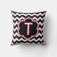Letter T. Hübsche Monogramm (Single inital) werfen Kissen. Dicke schwarz-weiße Zickzack-Streifen (Zickzack), mit weißer und fuchsienfarbener Dekoration und einem Single in der Mitte. Unsere Kissen sind in drei Größen erhältlich: 16" x 16" Quadrat, 20" x 20" Quadrat, oder ein Lendenkissen, das 13" x 21" ist, und entweder Baumwolle oder Polyester. Produziert von nachhaltig beschäftigten Single Müttern in den USA, trägt Ihr maßgeschneiderter Kissenkauf dazu bei, den Teufelskreis von Armut für Single Mütter und ihre Kinder zu durchbrechen, während es in Ihrer Zuhause großartig aussieht! Von Scarebaby Design, gestützt durch die Zazzle-Garantie.