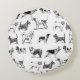 Schwarz-Weiß-Muster für Vintage Hunde Rundes Kissen