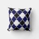 Schwarz-Weiß-Quartett-Muster auf Navy Blue Kissen