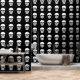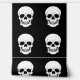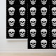 Ein sich wiederholendes Muster weißer Schädel auf schwarzem Hintergrund, das ein unheimliches Halloween-Aussehen in jeden Raum bringt. Ideal für Akzent-Wände, Party-Backdrops oder kreative DIY-Projekte, bei denen ein schlichter gotischer Stil herausragt.
