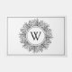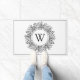 Ihr Monogramm in einem Weihnachtskranzrahmen. Ideal für Weihnachten oder Neujahr Partys. Dieses schlichte Schwarz-Weiß-Design wird auf einem gemusterten Teppich großartig platziert aussehen.