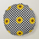 Schwarz-Weiß-Sonnenblumen Gestell der karierten Bl Rundes Kissen