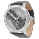 Uhr, Vintage Männeruhr mit schwarzem Lederarmband