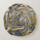 Schwarz, Weiß und Goldmarmor Ölteppich Abstrakt Rundes Kissen
