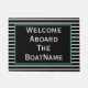 Perfekt chic und klassisch schwarz und weiß mit grünem Detail Willkommen an Bord Die __________ Türmatte für Ihr Boot Yachthafen Schlupf anpassbar mit Ihrem Bootsnamen