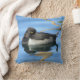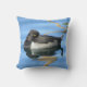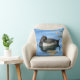 Bist du mit dieser kleinen Ente verwandt? Dieses Naturkissengefecht zeigt ein Foto einer schwarz-weißen Ente, mit seinem Schnabel in seine Federn gesteckt und sein Auge offen die Welt beobachten. Sieht nicht so aus, als wäre er bereit, sich dem Tag zu stellen. Die Reflektion der Ente ist im ruhigen blauen Wasser zu sehen. Die Rückseite dieses Kissens zeichnet sich durch eine hellblaue, solide Farbe aus, die nach Belieben angepasst werden kann.