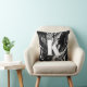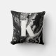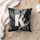 Einfaches, stilvolles Monogramm-Anfangsbuchstaben mit einem schwarz-weißen Marmorwirbelmuster auf der Vorderseite, massivem schwarzem Rücken und moderner minimalistischer Typografie in Weiß. Dieses personalisierte Kissen macht das perfekte Geschenk und das durchdachte Wohngestaltung-Accessoire.