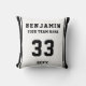 Schwarz und Weiß Spielername Teamsportkids halten Kissen für Sake. Der Text ist eine moderne schwarze Typografie auf einem weißen Hintergrund mit einem schwarzen Streifen. Sie können jeden Text ändern. Ein perfektes Geschenk für Fußball, Fußball, Baseball, Basketballspieler, Teamkollegen, Trainer, ... Tolle Erinnerung an den Lieblingssport.