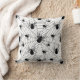 Schwarz-weiße Spinnen Spinnweb Halloween Muster Kissen Throw. Schwarz-Weiß Spinnennetz Halloween Zuhause Décor. Cooles lustiges Muster mit Spooky Halloween Cobweb Design. Maßgeschneidertes Weiß mit großen und kleinen beängstigenden Crawling Spinnen.