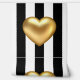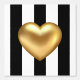 Das extravagante, auffällige und kitschige Tapete mit einem großen goldenen Herz in 3D-Effekt auf einem schwarz-weiß gestreiften Hintergrund. Hintergrundfarbe und Stripfarben können nach individuellen Wünschen bearbeitet werden