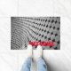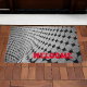 Diese monochrome Begrüßungstür mit einem Muster abnehmender Kreise, die eine optische Täuschung von konturierten Wellen von grauen Kreisen und schwarzen Diamanten schafft, ist ein lustiger und einzigartiger Gruß.