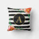 Mit diesem grandiosen, schwarz-weiß gestreiften Monogramm-Kissen verleihen Sie jedem Zimmer ein Gefühl von Schönheit, Farbe und Stil! Das goldene Monogramm auf dem schwarzen Kreis mit goldenem Rahmen in der Mitte ist beeindruckend, trendig und zeitgemäß. Es ist mit rosa Blume und hübschem grünem Blattwerk verziert. Das gleiche auf beiden Seiten wäre ein tolles Geschenk für jeden, oder eine schöne Leckerei für sich selbst!