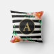 Schwarz-weißer Streifen aus Aquarellgoldmonogramm Kissen