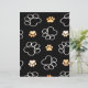 Dieser niedliche Pfotendruck ist für Liebhaber von Haustieren überall ideal. Der schwarze Hintergrund und die weißen und goldenen Pfoten zeichnen sich durch ein verstreutes Muster aus.