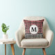 Schwarz-weißes rosa Herzmuster Monogramm Kissen