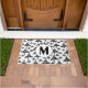 Schwarz-weiße Weihnachtsbaum Muster Monogram Doormat. Modernes Urlaubsstil mit modernem und abstraktem Weihnachtsbaummuster in Schwarz-Weiß-Farben. Fügen Sie Ihr Monogramm hinzu. Eine tolle Weihnachtsgeschenkidee für Ihre Freunde und Familie und eine perfekte Weihnachtsdekoration für Ihre Zuhause.
