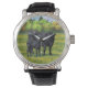 Schwarze Anguskühe und Niedliches Kalb im Sommerwe Armbanduhr