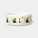 Das ist ein niedliches, schwarzes, atomares Katzenmuster mit Retro-Sternexplosionen aus der Mitte des Jahrhunderts in Rosa, Orange und aquamarin auf hellcremefarbenem Hintergrund. Es ist toll, nach einer Schüssel für deine Katze zu suchen